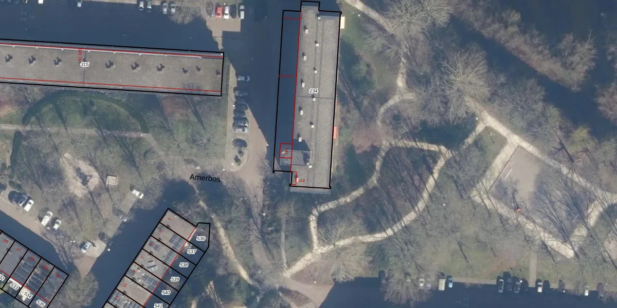 Het perceel waarop Amerbos 36 staat heeft een oppervlakte van 1049 m². Dit is een zeer groot perceel. De perceeloppervlakte wordt geregistreerd door het Kadaster. Gedetailleerde informatie over de maten van dit perceel kunt u vinden in het rapport Kadastrale kaart met maatvoering van Amerbos 36.