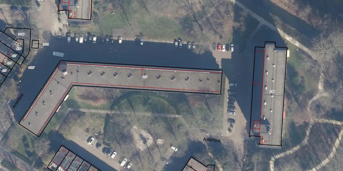 Het perceel waarop Amerbos 65 staat heeft een oppervlakte van 1850 m². Dit is een zeer groot perceel. De perceeloppervlakte wordt geregistreerd door het Kadaster. Gedetailleerde informatie over de maten van dit perceel kunt u vinden in het rapport Kadastrale kaart met maatvoering van Amerbos 65.