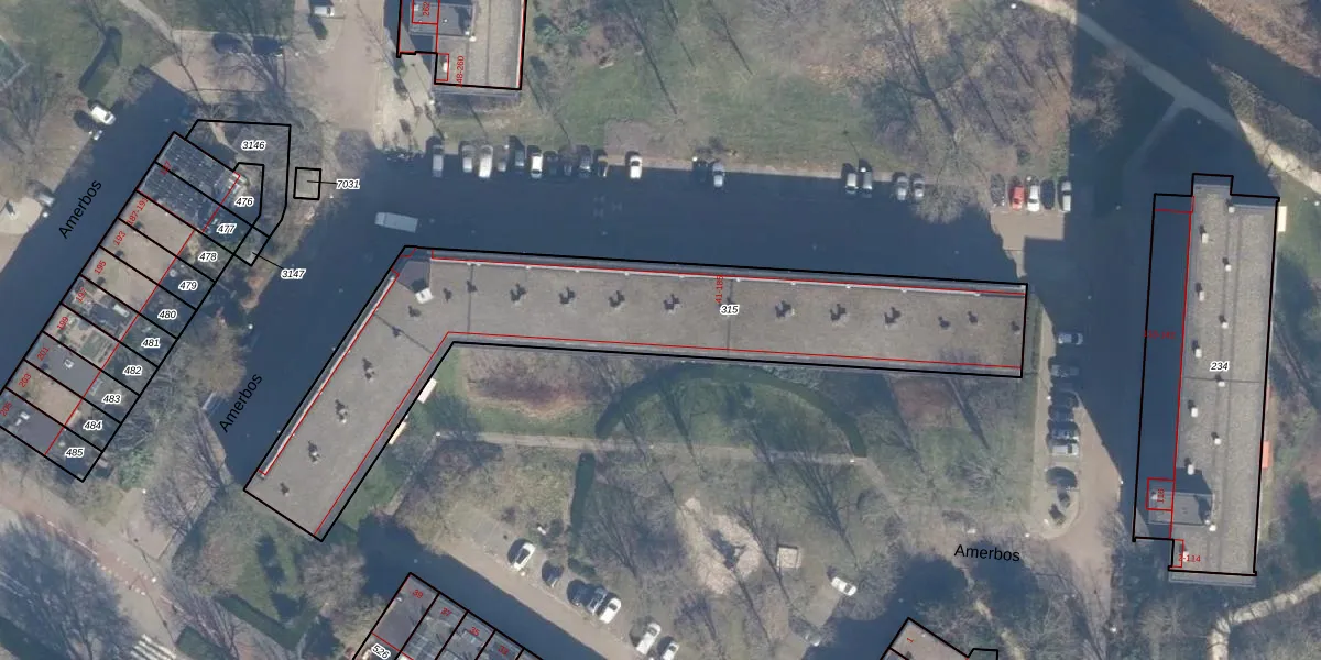 Het perceel waarop Amerbos 87 staat heeft een oppervlakte van 1850 m². Dit is een zeer groot perceel. De perceeloppervlakte wordt geregistreerd door het Kadaster. Gedetailleerde informatie over de maten van dit perceel kunt u vinden in het rapport Kadastrale kaart met maatvoering van Amerbos 87.