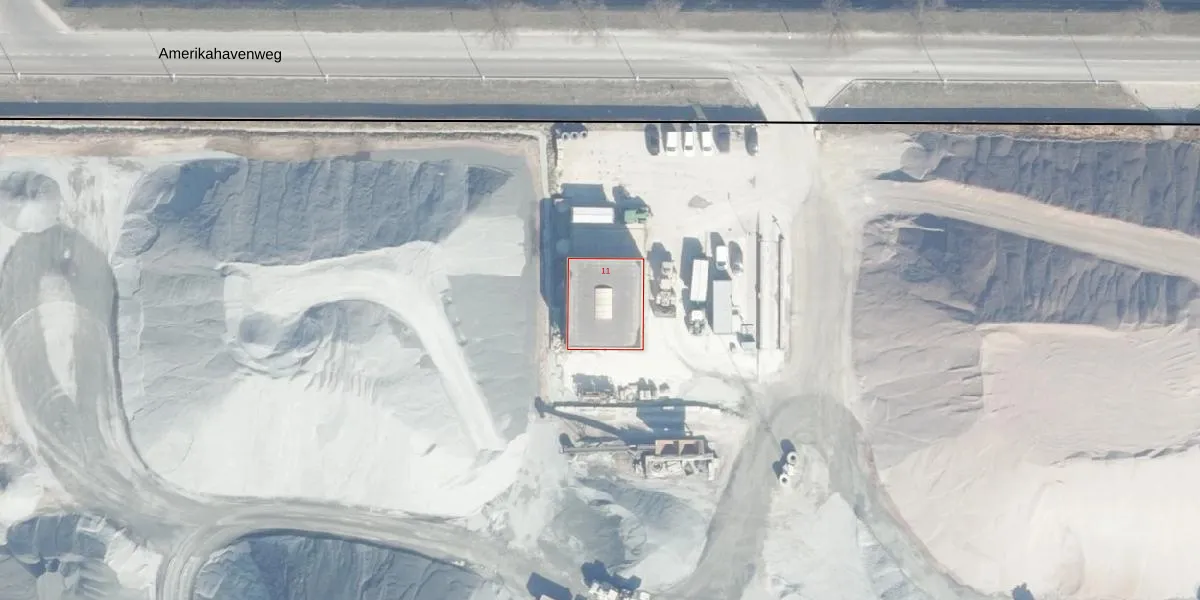 Het perceel waarop Amerikahavenweg 11 staat heeft een oppervlakte van 5,5 ha. Dit is een zeer groot perceel. De perceeloppervlakte wordt geregistreerd door het Kadaster. Gedetailleerde informatie over de maten van dit perceel kunt u vinden in het rapport Kadastrale kaart met maatvoering van Amerikahavenweg 11.
