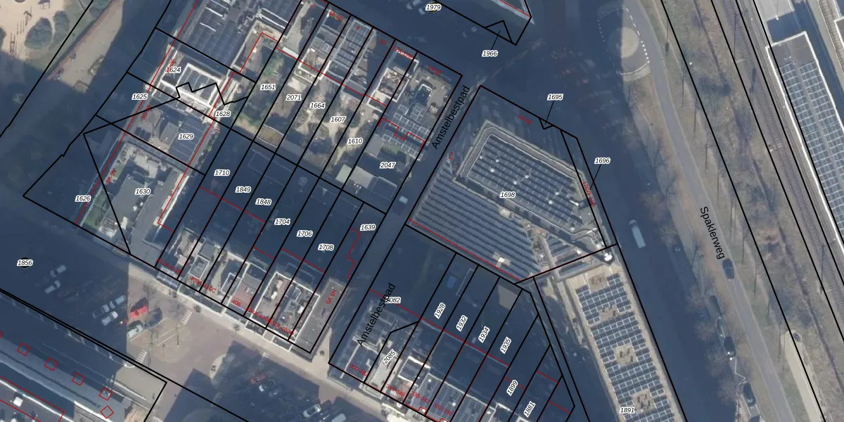 Het perceel waarop het adres ligt is ASD27-AG-1698. De afkorting 'ASD27' staat voor kadastrale gemeente Amsterdam. Het perceel is kleiner dan gemiddeld in Amsterdam. Het perceel is 1310 m² groot, terwijl het gemiddelde ligt op 3544,61 m². Het kleinste perceel in de kadastrale gemeente is 1 m² groot. De grootste perceeloppervlakte is 18,4 ha. Er zijn 154 adressen aanwezig op het perceel. In de Basisregistratie Kadaster (BRK) werden de grenzen van het perceel geregistreerd op 14-05-2020.