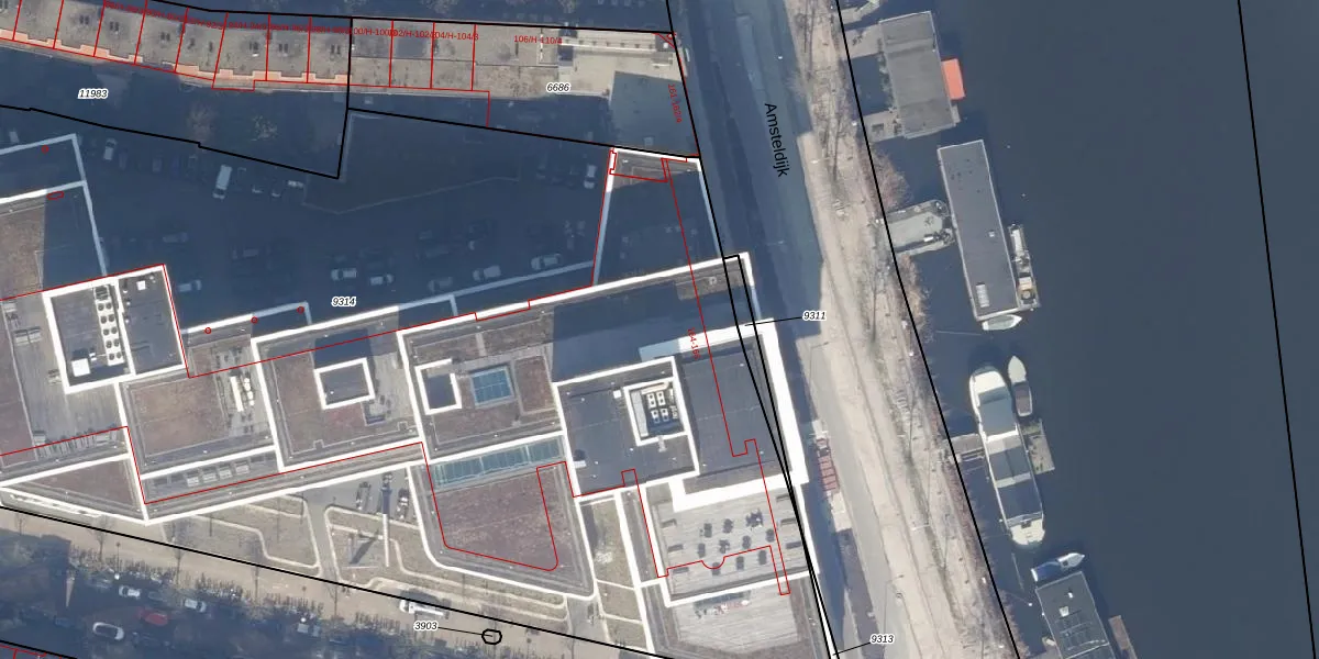 Het perceel waarop Amsteldijk 164 staat heeft een oppervlakte van 8996 m². Dit is een zeer groot perceel. De perceeloppervlakte wordt geregistreerd door het Kadaster. Gedetailleerde informatie over de maten van dit perceel kunt u vinden in het rapport Kadastrale kaart met maatvoering van Amsteldijk 164.