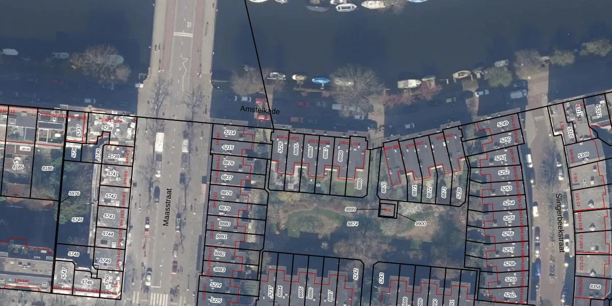 Amstelkade 103-H is gelegen op kadastraal perceel ASD18V8866. Deze kadastrale aanduiding is uniek en wordt gebruikt door het Kadaster om eigendomsrechten en andere zakelijke rechten vast te leggen. Het perceel maakt onderdeel uit van de kadastrale gemeente Amsterdam.