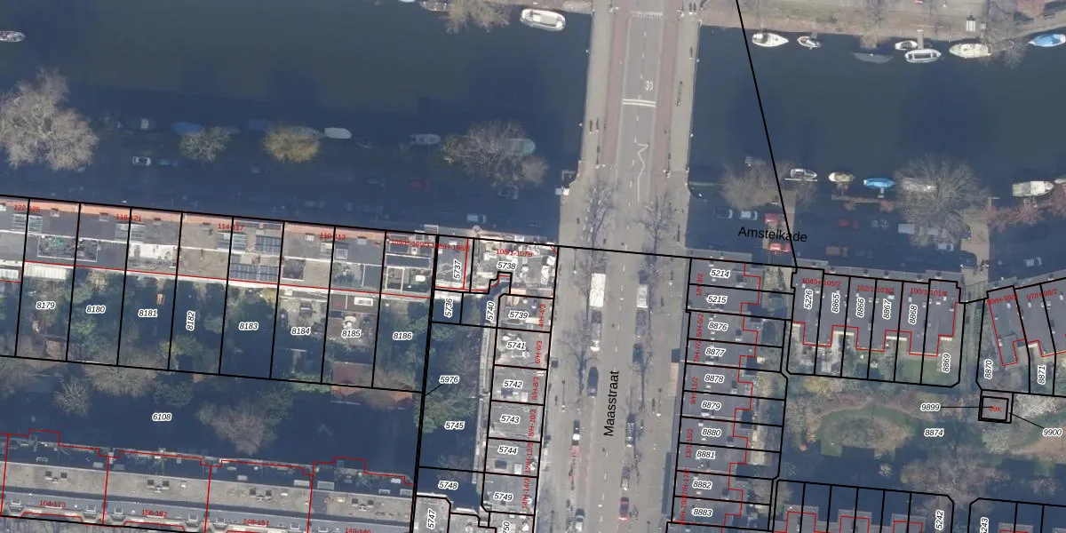 Amstelkade 106-3 is gelegen op kadastraal perceel ASD18V5738. Deze kadastrale aanduiding is uniek en wordt gebruikt door het Kadaster om eigendomsrechten en andere zakelijke rechten vast te leggen. Het perceel maakt onderdeel uit van de kadastrale gemeente Amsterdam.
