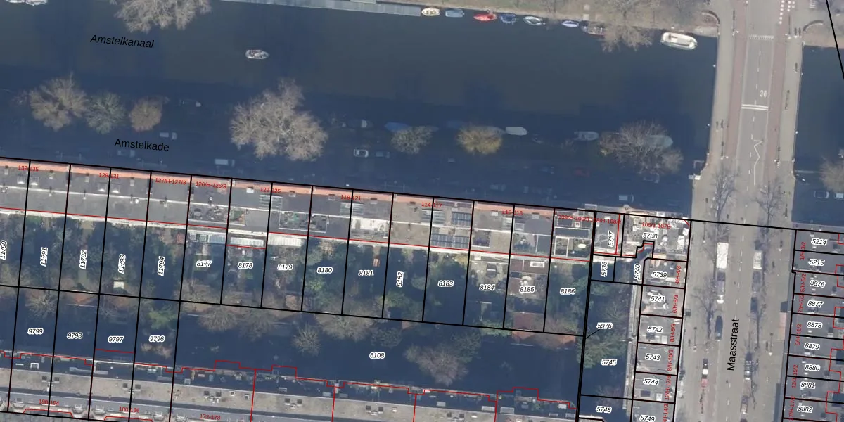 Amstelkade 116-2 is gelegen op kadastraal perceel ASD18V8182. Deze kadastrale aanduiding is uniek en wordt gebruikt door het Kadaster om eigendomsrechten en andere zakelijke rechten vast te leggen. Het perceel maakt onderdeel uit van de kadastrale gemeente Amsterdam.