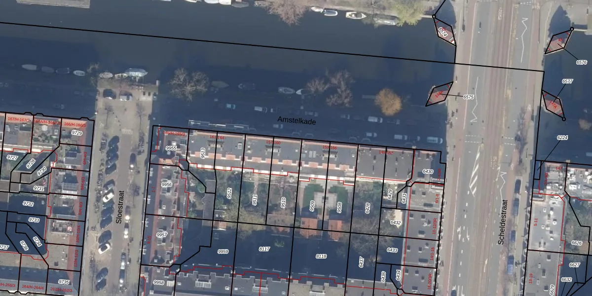 Amstelkade 157 is gelegen op kadastraal perceel ASD18V9510. Deze kadastrale aanduiding is uniek en wordt gebruikt door het Kadaster om eigendomsrechten en andere zakelijke rechten vast te leggen. Het perceel maakt onderdeel uit van de kadastrale gemeente Amsterdam.