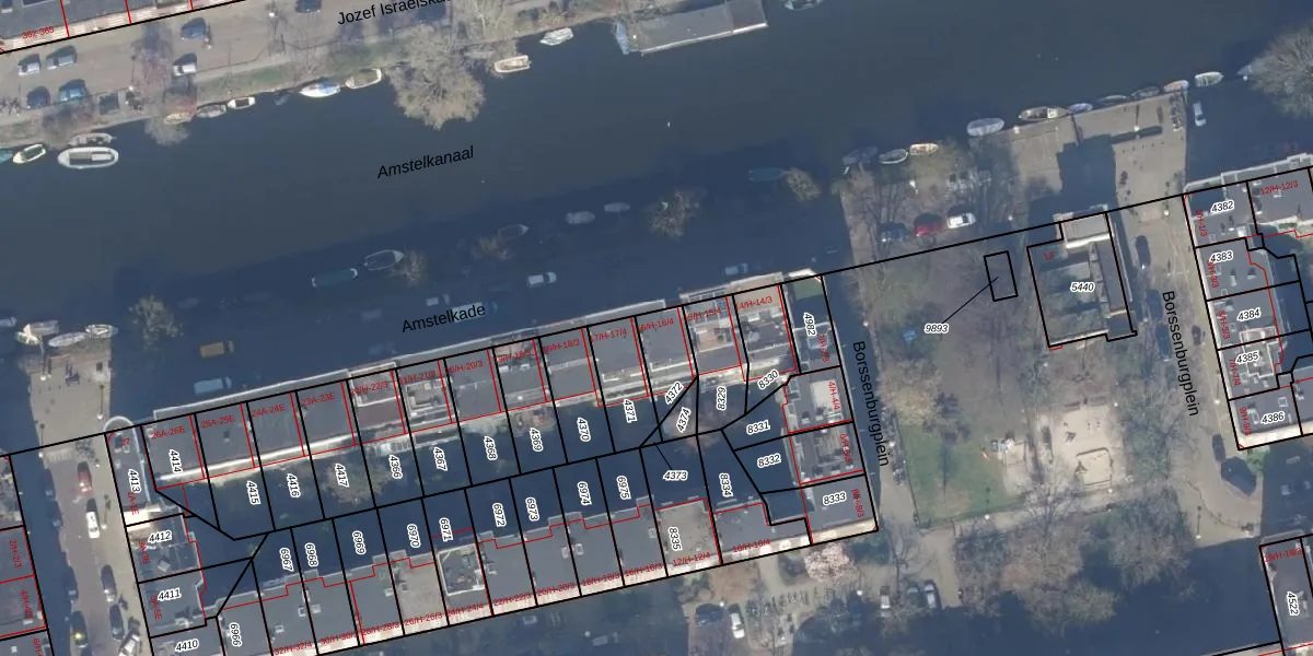 Amstelkade 16-1 is gelegen op kadastraal perceel ASD18V4372. Deze kadastrale aanduiding is uniek en wordt gebruikt door het Kadaster om eigendomsrechten en andere zakelijke rechten vast te leggen. Het perceel maakt onderdeel uit van de kadastrale gemeente Amsterdam.