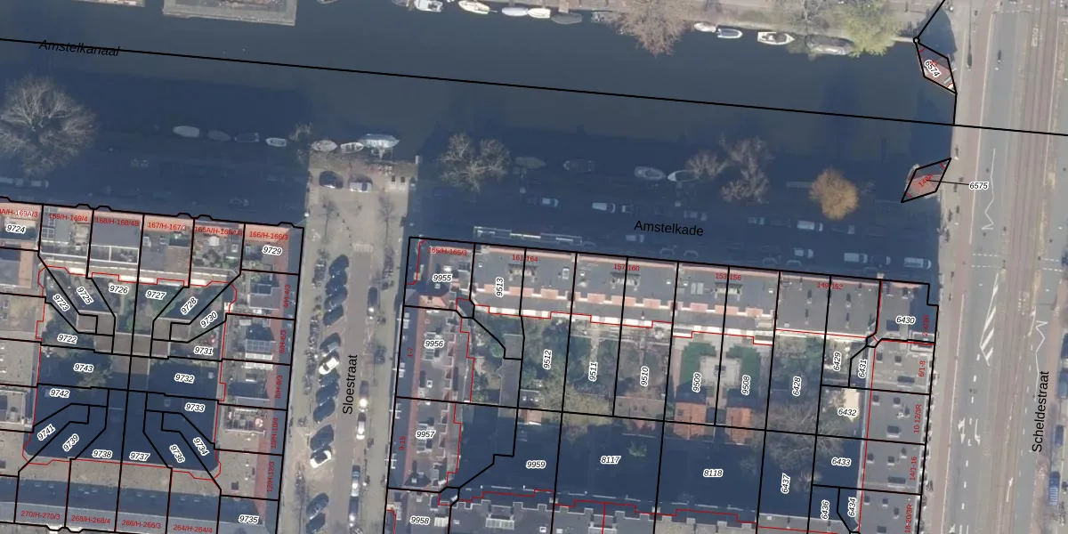 Amstelkade 162-1 is gelegen op kadastraal perceel ASD18V9512. Deze kadastrale aanduiding is uniek en wordt gebruikt door het Kadaster om eigendomsrechten en andere zakelijke rechten vast te leggen. Het perceel maakt onderdeel uit van de kadastrale gemeente Amsterdam.