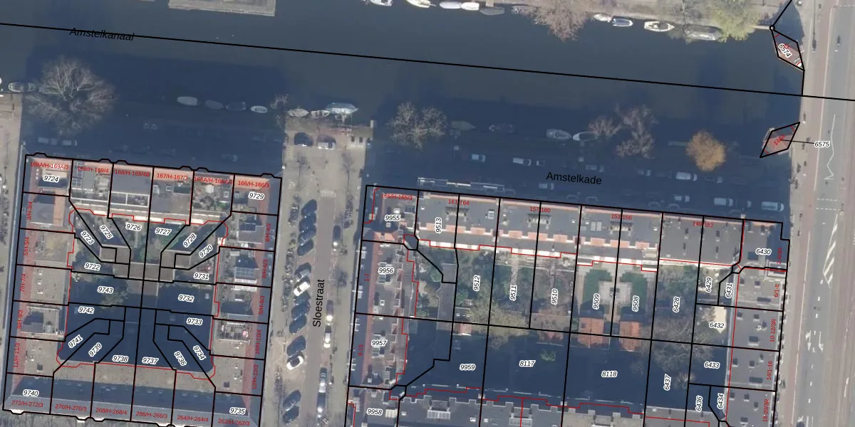 Amstelkade 164 is gelegen op kadastraal perceel ASD18V9513. Deze kadastrale aanduiding is uniek en wordt gebruikt door het Kadaster om eigendomsrechten en andere zakelijke rechten vast te leggen. Het perceel maakt onderdeel uit van de kadastrale gemeente Amsterdam.