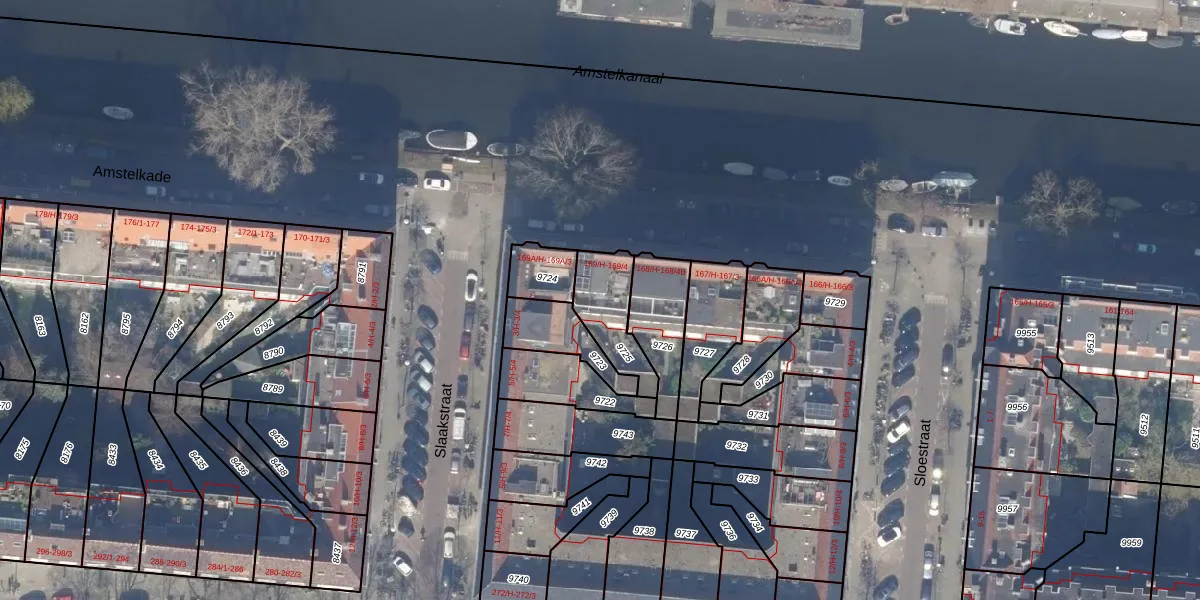Amstelkade 169-4 is gelegen op kadastraal perceel ASD18V9725. Deze kadastrale aanduiding is uniek en wordt gebruikt door het Kadaster om eigendomsrechten en andere zakelijke rechten vast te leggen. Het perceel maakt onderdeel uit van de kadastrale gemeente Amsterdam.