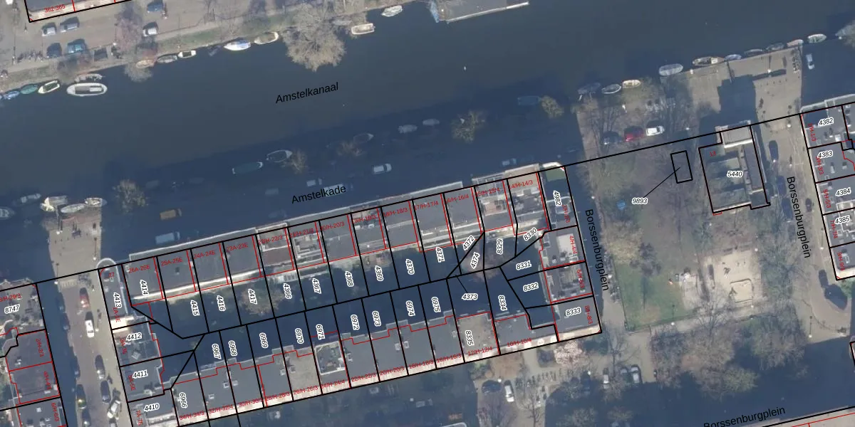 Amstelkade 17-H is gelegen op kadastraal perceel ASD18V4371. Deze kadastrale aanduiding is uniek en wordt gebruikt door het Kadaster om eigendomsrechten en andere zakelijke rechten vast te leggen. Het perceel maakt onderdeel uit van de kadastrale gemeente Amsterdam.