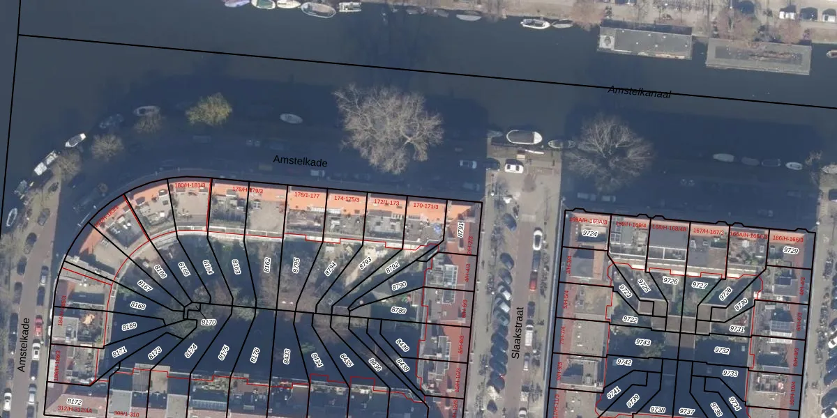 Amstelkade 171-2 is gelegen op kadastraal perceel ASD18V8792. Deze kadastrale aanduiding is uniek en wordt gebruikt door het Kadaster om eigendomsrechten en andere zakelijke rechten vast te leggen. Het perceel maakt onderdeel uit van de kadastrale gemeente Amsterdam.