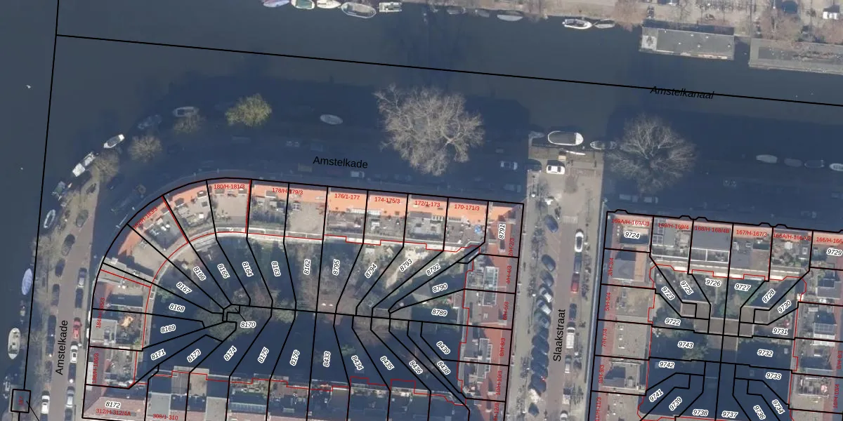 Amstelkade 173 is gelegen op kadastraal perceel ASD18V8793. Deze kadastrale aanduiding is uniek en wordt gebruikt door het Kadaster om eigendomsrechten en andere zakelijke rechten vast te leggen. Het perceel maakt onderdeel uit van de kadastrale gemeente Amsterdam.