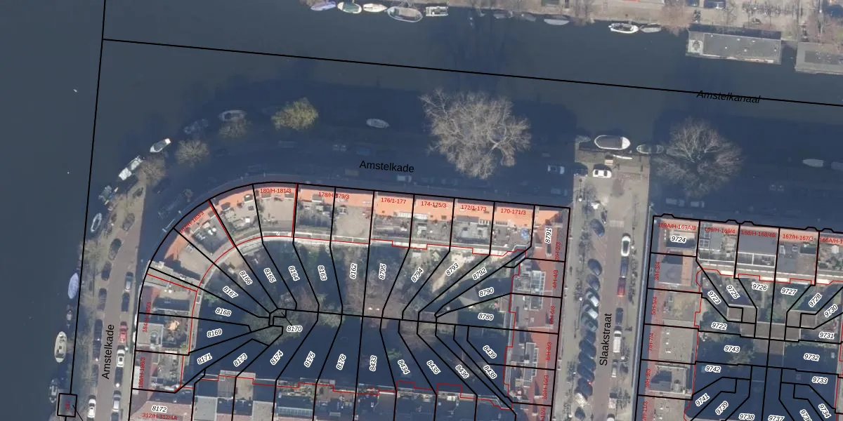 Amstelkade 175-3 is gelegen op kadastraal perceel ASD18V8794. Deze kadastrale aanduiding is uniek en wordt gebruikt door het Kadaster om eigendomsrechten en andere zakelijke rechten vast te leggen. Het perceel maakt onderdeel uit van de kadastrale gemeente Amsterdam.