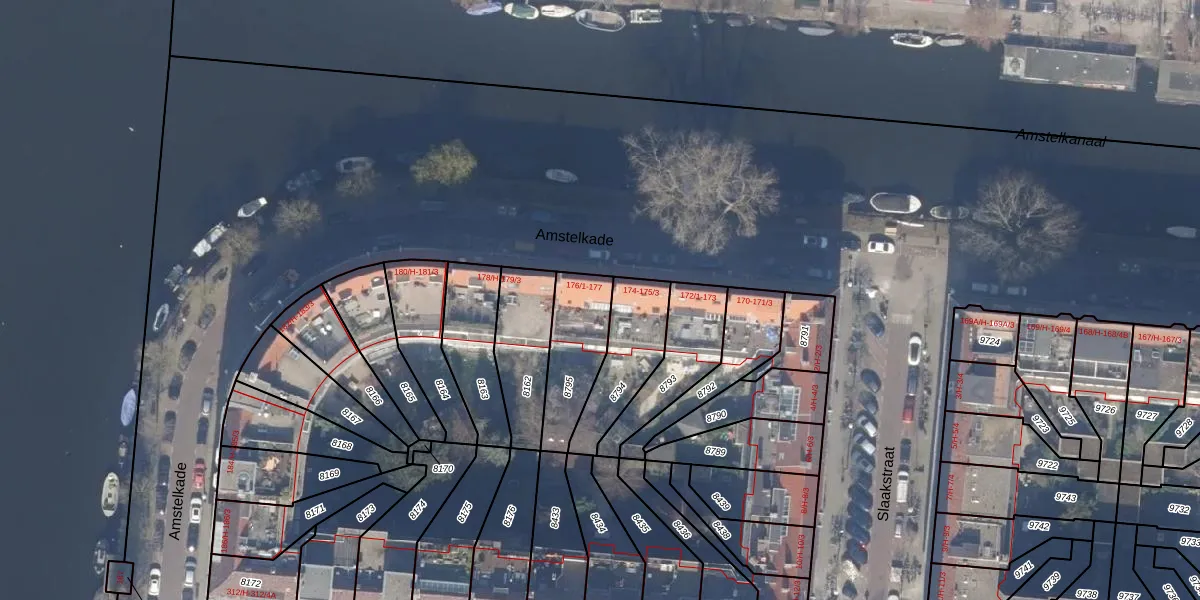 Amstelkade 176-1 is gelegen op kadastraal perceel ASD18V8795. Deze kadastrale aanduiding is uniek en wordt gebruikt door het Kadaster om eigendomsrechten en andere zakelijke rechten vast te leggen. Het perceel maakt onderdeel uit van de kadastrale gemeente Amsterdam.