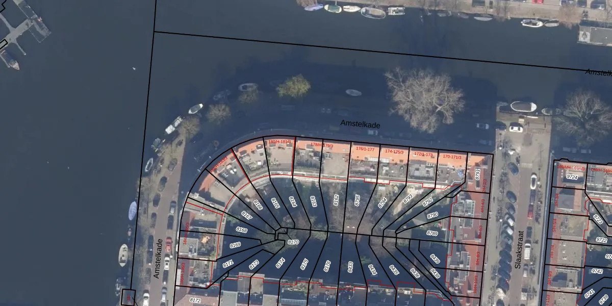 Amstelkade 179-H is gelegen op kadastraal perceel ASD18V8163. Deze kadastrale aanduiding is uniek en wordt gebruikt door het Kadaster om eigendomsrechten en andere zakelijke rechten vast te leggen. Het perceel maakt onderdeel uit van de kadastrale gemeente Amsterdam.