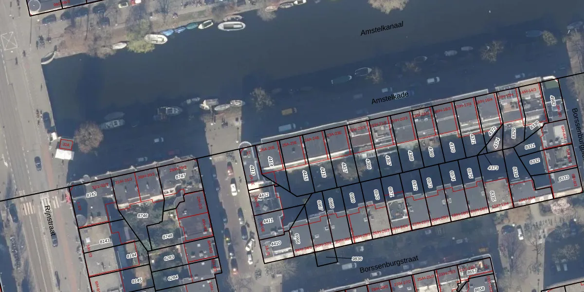 Amstelkade 25-A is gelegen op kadastraal perceel ASD18V4415. Deze kadastrale aanduiding is uniek en wordt gebruikt door het Kadaster om eigendomsrechten en andere zakelijke rechten vast te leggen. Het perceel maakt onderdeel uit van de kadastrale gemeente Amsterdam.