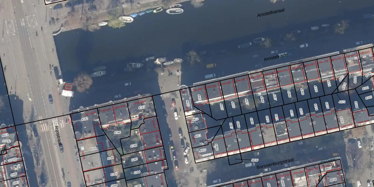 Het perceel waarop Amstelkade 27 staat heeft een oppervlakte van 96 m². Dit is een klein perceel. De perceeloppervlakte wordt geregistreerd door het Kadaster. Gedetailleerde informatie over de maten van dit perceel kunt u vinden in het rapport Kadastrale kaart met maatvoering van Amstelkade 27.