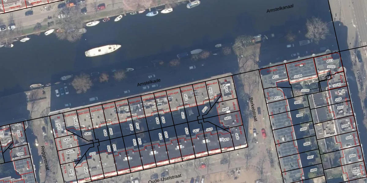 Amstelkade 42-3 is gelegen op kadastraal perceel ASD18V5411. Deze kadastrale aanduiding is uniek en wordt gebruikt door het Kadaster om eigendomsrechten en andere zakelijke rechten vast te leggen. Het perceel maakt onderdeel uit van de kadastrale gemeente Amsterdam.