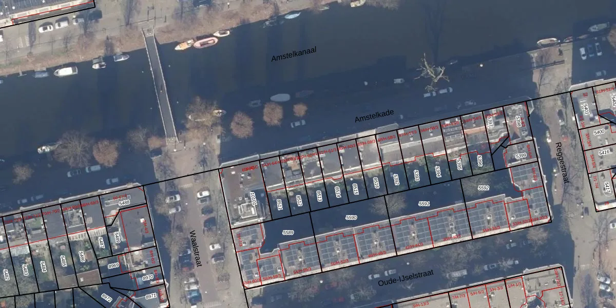 Amstelkade 62-4V is gelegen op kadastraal perceel ASD18V8513. Deze kadastrale aanduiding is uniek en wordt gebruikt door het Kadaster om eigendomsrechten en andere zakelijke rechten vast te leggen. Het perceel maakt onderdeel uit van de kadastrale gemeente Amsterdam.