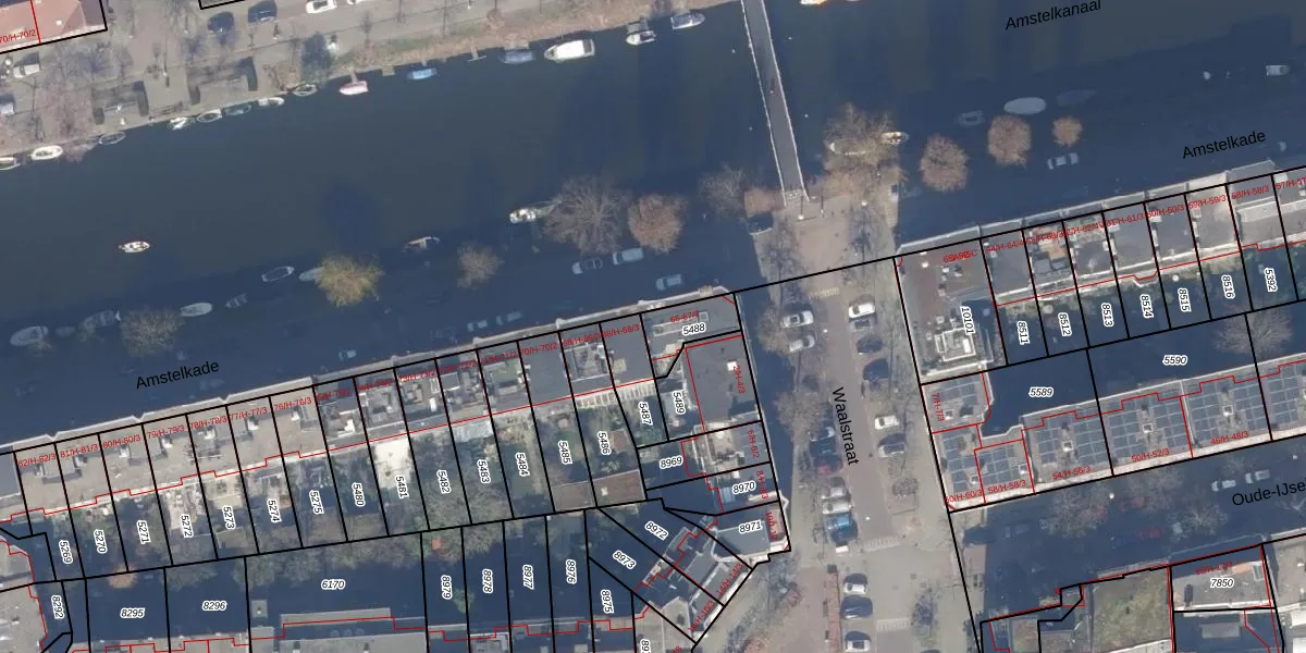 Amstelkade 67-2 is gelegen op kadastraal perceel ASD18V5488. Deze kadastrale aanduiding is uniek en wordt gebruikt door het Kadaster om eigendomsrechten en andere zakelijke rechten vast te leggen. Het perceel maakt onderdeel uit van de kadastrale gemeente Amsterdam.
