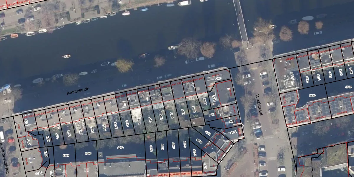 Amstelkade 70-2 is gelegen op kadastraal perceel ASD18V5485. Deze kadastrale aanduiding is uniek en wordt gebruikt door het Kadaster om eigendomsrechten en andere zakelijke rechten vast te leggen. Het perceel maakt onderdeel uit van de kadastrale gemeente Amsterdam.