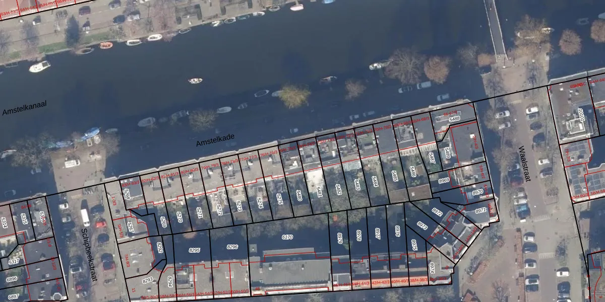 Amstelkade 74-H is gelegen op kadastraal perceel ASD18V5481. Deze kadastrale aanduiding is uniek en wordt gebruikt door het Kadaster om eigendomsrechten en andere zakelijke rechten vast te leggen. Het perceel maakt onderdeel uit van de kadastrale gemeente Amsterdam.