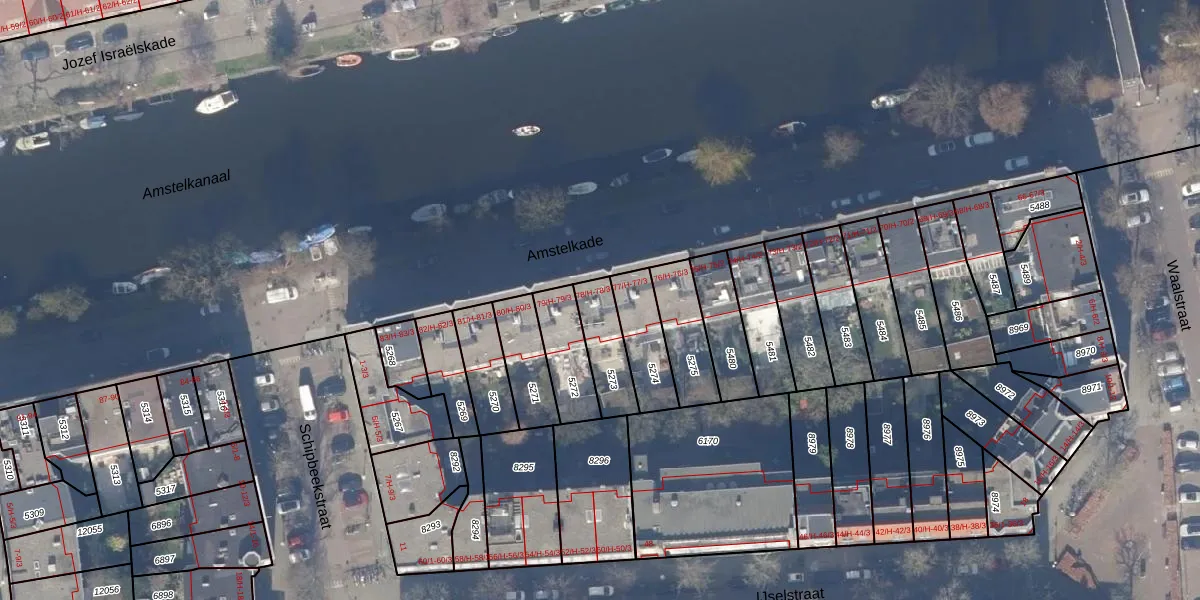 Amstelkade 78-1 is gelegen op kadastraal perceel ASD18V5273. Deze kadastrale aanduiding is uniek en wordt gebruikt door het Kadaster om eigendomsrechten en andere zakelijke rechten vast te leggen. Het perceel maakt onderdeel uit van de kadastrale gemeente Amsterdam.