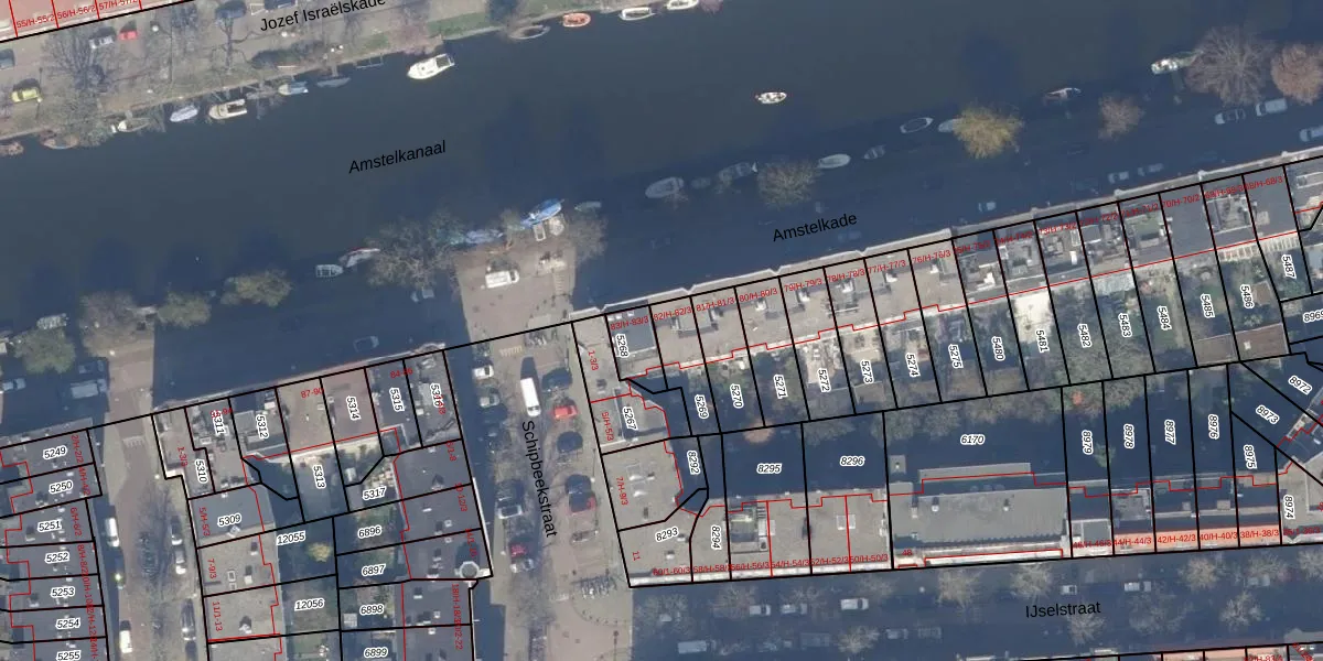 Amstelkade 82-H is gelegen op kadastraal perceel ASD18V5269. Deze kadastrale aanduiding is uniek en wordt gebruikt door het Kadaster om eigendomsrechten en andere zakelijke rechten vast te leggen. Het perceel maakt onderdeel uit van de kadastrale gemeente Amsterdam.
