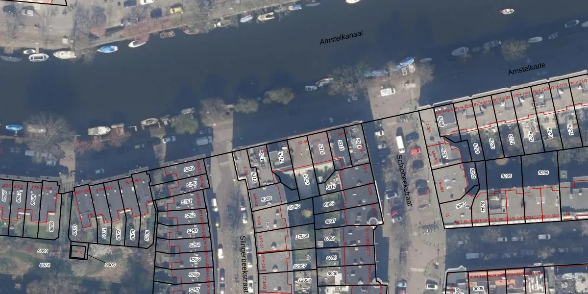 Amstelkade 90 is gelegen op kadastraal perceel ASD18V5313. Deze kadastrale aanduiding is uniek en wordt gebruikt door het Kadaster om eigendomsrechten en andere zakelijke rechten vast te leggen. Het perceel maakt onderdeel uit van de kadastrale gemeente Amsterdam.