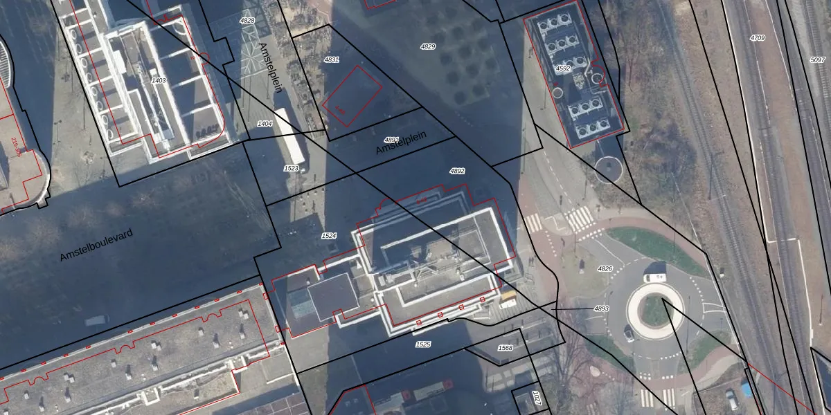 Het perceel waarop Amstelplein 30 staat heeft een oppervlakte van 815 m². Dit is een groot perceel. De perceeloppervlakte wordt geregistreerd door het Kadaster. Gedetailleerde informatie over de maten van dit perceel kunt u vinden in het rapport Kadastrale kaart met maatvoering van Amstelplein 30.