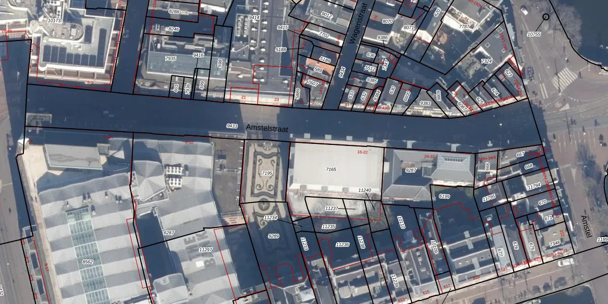 Amstelstraat 16 is gelegen op kadastraal perceel ASD06I7165. Deze kadastrale aanduiding is uniek en wordt gebruikt door het Kadaster om eigendomsrechten en andere zakelijke rechten vast te leggen. Het perceel maakt onderdeel uit van de kadastrale gemeente Amsterdam.
