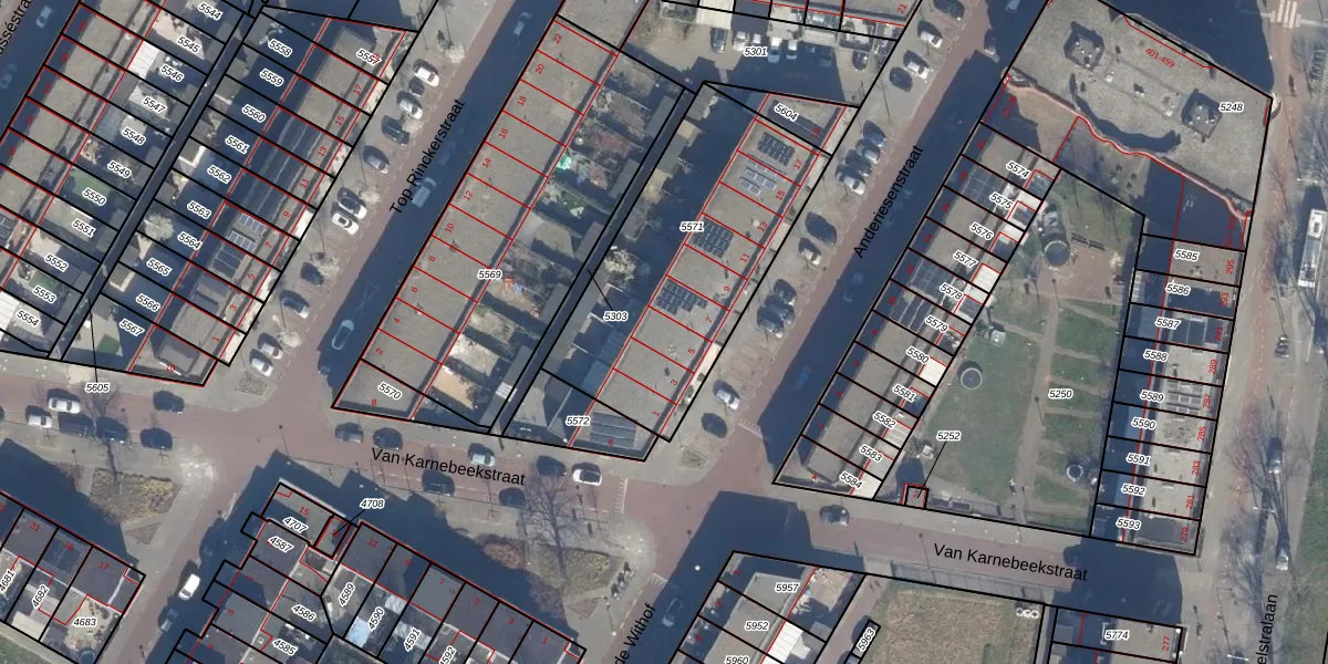 Anderiesenstraat 5 is gelegen op kadastraal perceel STN02I5571. Deze kadastrale aanduiding is uniek en wordt gebruikt door het Kadaster om eigendomsrechten en andere zakelijke rechten vast te leggen. Het perceel maakt onderdeel uit van de kadastrale gemeente Sloten Noord-Holland.