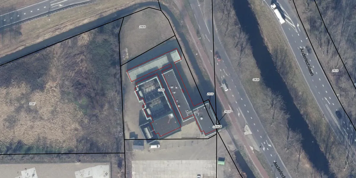 Het perceel waarop Anderlechtlaan 250 staat heeft een oppervlakte van 2228 m². Dit is een zeer groot perceel. De perceeloppervlakte wordt geregistreerd door het Kadaster. Gedetailleerde informatie over de maten van dit perceel kunt u vinden in het rapport Kadastrale kaart met maatvoering van Anderlechtlaan 250.