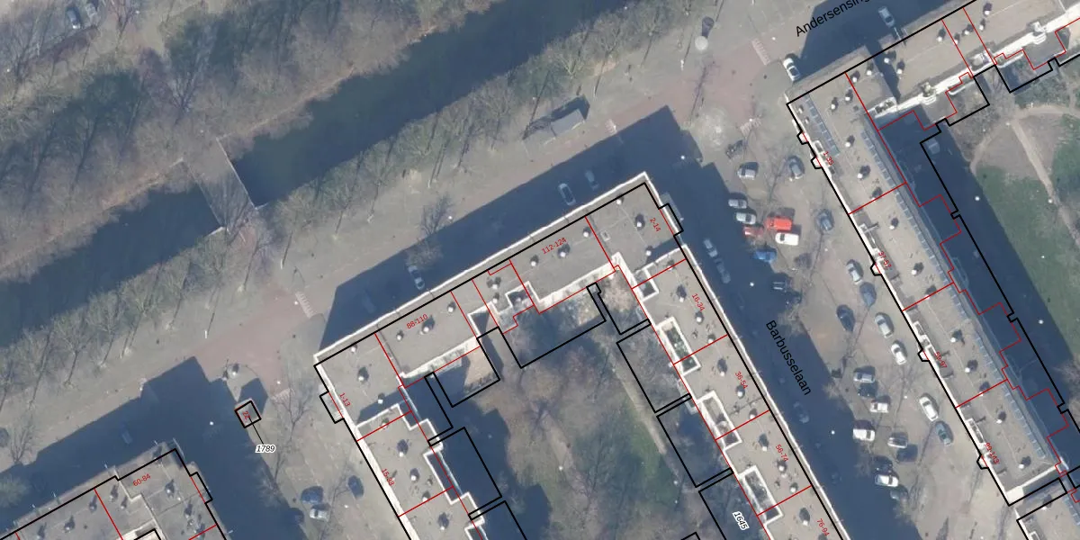 Het perceel waarop Andersensingel 114 staat heeft een oppervlakte van 7735 m². Dit is een zeer groot perceel. De perceeloppervlakte wordt geregistreerd door het Kadaster. Gedetailleerde informatie over de maten van dit perceel kunt u vinden in het rapport Kadastrale kaart met maatvoering van Andersensingel 114.