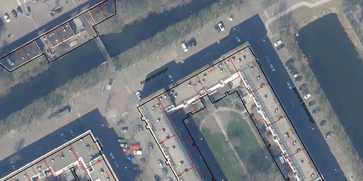 Het perceel waarop Andersensingel 132 staat heeft een oppervlakte van 7328 m². Dit is een zeer groot perceel. De perceeloppervlakte wordt geregistreerd door het Kadaster. Gedetailleerde informatie over de maten van dit perceel kunt u vinden in het rapport Kadastrale kaart met maatvoering van Andersensingel 132.