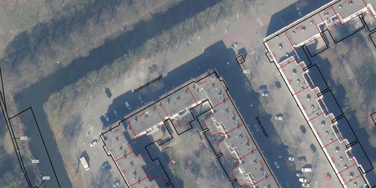 Het perceel waarop Andersensingel 54 staat heeft een oppervlakte van 7733 m². Dit is een zeer groot perceel. De perceeloppervlakte wordt geregistreerd door het Kadaster. Gedetailleerde informatie over de maten van dit perceel kunt u vinden in het rapport Kadastrale kaart met maatvoering van Andersensingel 54.