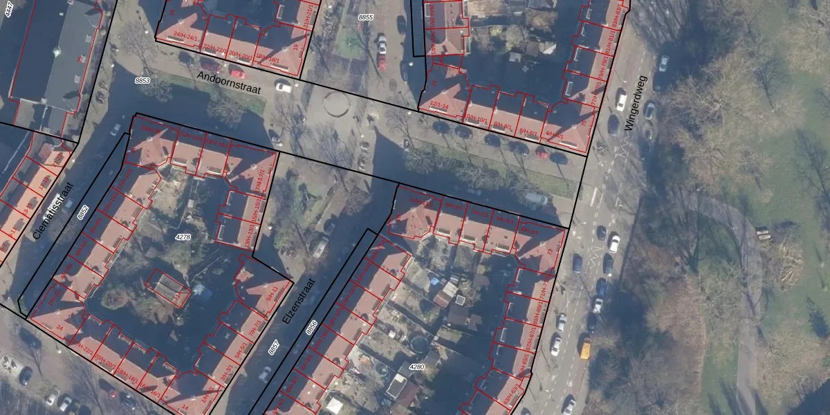 Het perceel waarop Andoornstraat 11-H staat heeft een oppervlakte van 4003 m². Dit is een zeer groot perceel. De perceeloppervlakte wordt geregistreerd door het Kadaster. Gedetailleerde informatie over de maten van dit perceel kunt u vinden in het rapport Kadastrale kaart met maatvoering van Andoornstraat 11-H.