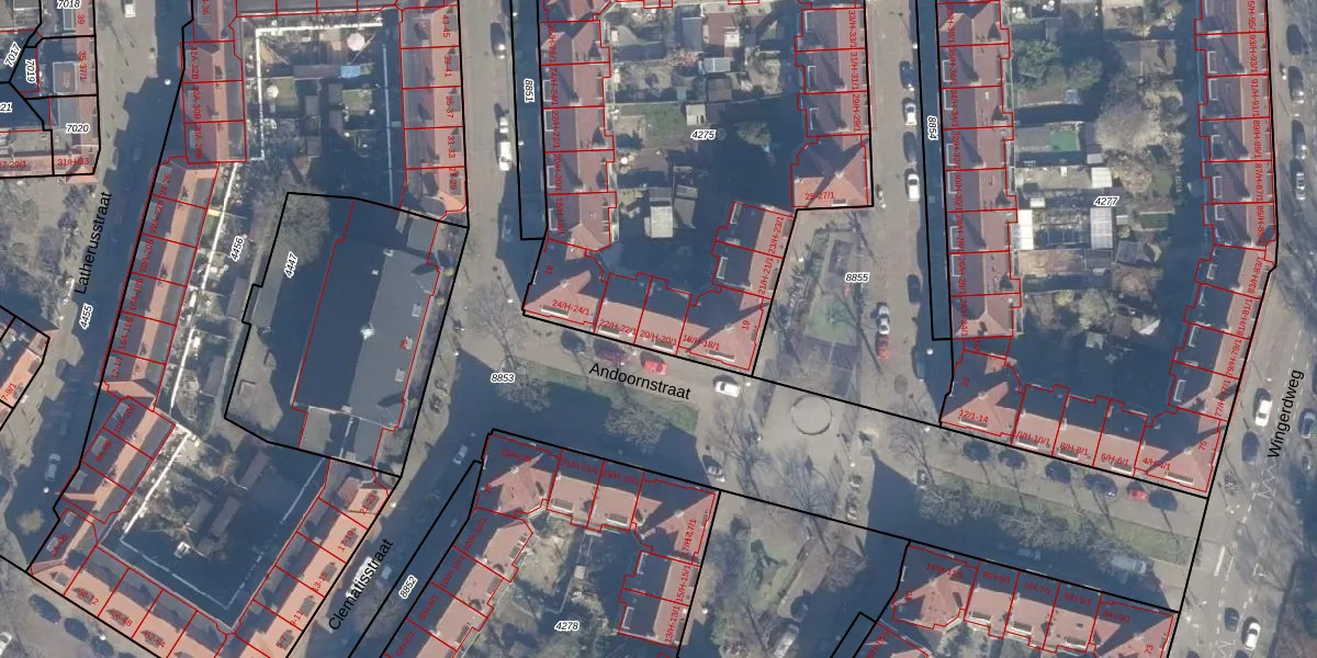 Het perceel waarop Andoornstraat 20-1 staat heeft een oppervlakte van 2840 m². Dit is een zeer groot perceel. De perceeloppervlakte wordt geregistreerd door het Kadaster. Gedetailleerde informatie over de maten van dit perceel kunt u vinden in het rapport Kadastrale kaart met maatvoering van Andoornstraat 20-1.