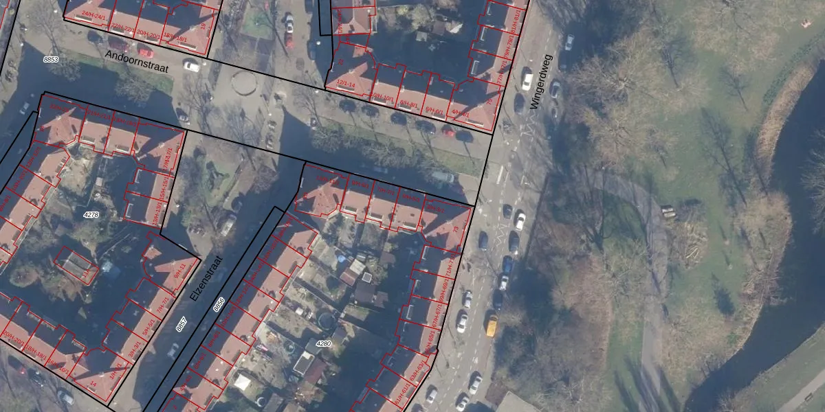 Het perceel waarop Andoornstraat 5-H staat heeft een oppervlakte van 4003 m². Dit is een zeer groot perceel. De perceeloppervlakte wordt geregistreerd door het Kadaster. Gedetailleerde informatie over de maten van dit perceel kunt u vinden in het rapport Kadastrale kaart met maatvoering van Andoornstraat 5-H.