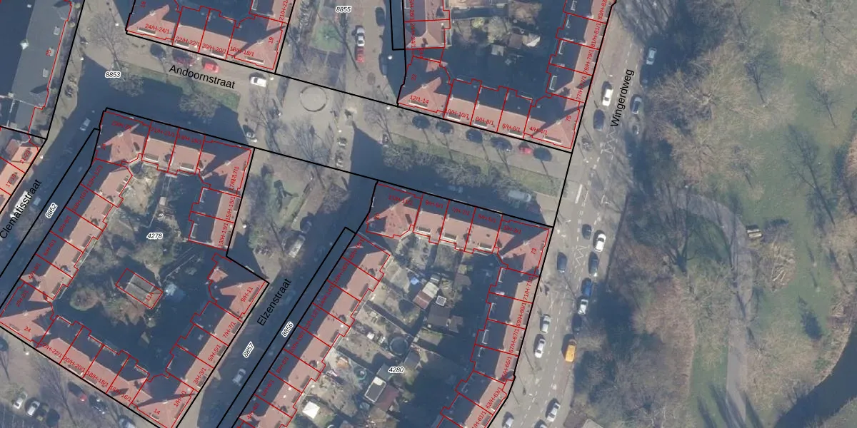 Het perceel waarop Andoornstraat 9-H staat heeft een oppervlakte van 4003 m². Dit is een zeer groot perceel. De perceeloppervlakte wordt geregistreerd door het Kadaster. Gedetailleerde informatie over de maten van dit perceel kunt u vinden in het rapport Kadastrale kaart met maatvoering van Andoornstraat 9-H.
