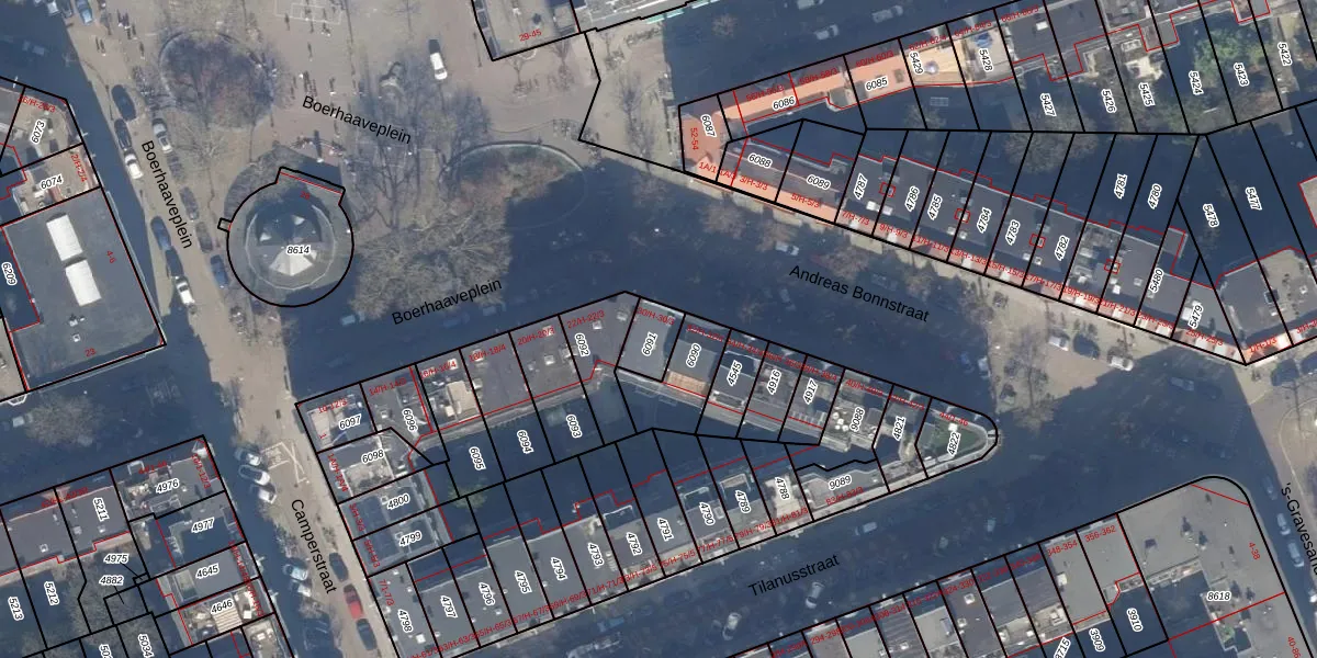 Het adres ligt op het perceel ASD15-S-6091, dat zich in de kadastrale gemeente Amsterdam bevindt. De gemiddelde perceelgrootte in Amsterdam is 537,06 m². Dit perceel is kleiner: de perceeloppervlakte bedraagt 80 m². De grootste perceeloppervlakte in de kadastrale gemeente is 14,5 ha. De kleinste oppervlakte bedraagt 0 m². Op het perceel liggen in totaal 4 adressen. In de Basisregistratie Kadaster (BRK) werden de grenzen van het perceel geregistreerd op 22-11-2006.