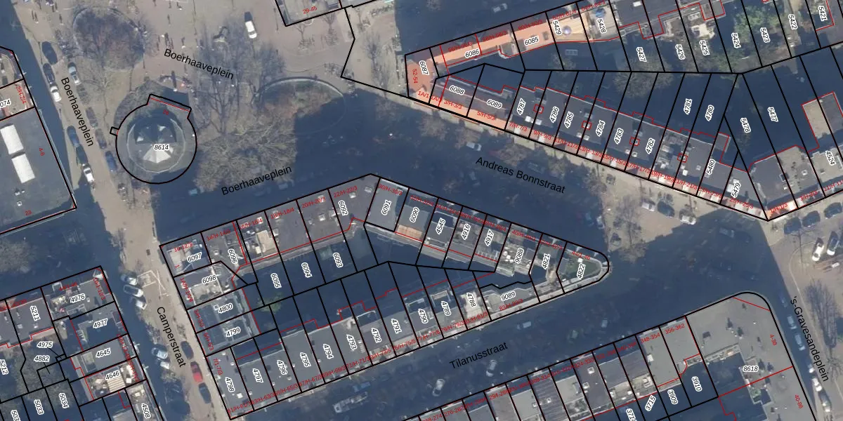 Het adres ligt op het perceel ASD15-S-6090, dat zich in de kadastrale gemeente Amsterdam bevindt. De gemiddelde perceelgrootte in Amsterdam is 537,06 m². Dit perceel is kleiner: de perceeloppervlakte bedraagt 170 m². Het grootste perceel in de kadastrale gemeente is 14,5 ha. Het kleinste perceel heeft een oppervlakte van 0 m². Er zijn 5 adressen aanwezig op het perceel. In de Basisregistratie Kadaster (BRK) werden de grenzen van het perceel geregistreerd op 22-11-2006.