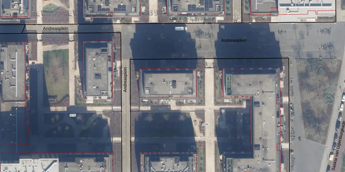 Het perceel waarop Andreasplein 19 staat heeft een oppervlakte van 6790 m². Dit is een zeer groot perceel. De perceeloppervlakte wordt geregistreerd door het Kadaster. Gedetailleerde informatie over de maten van dit perceel kunt u vinden in het rapport Kadastrale kaart met maatvoering van Andreasplein 19.