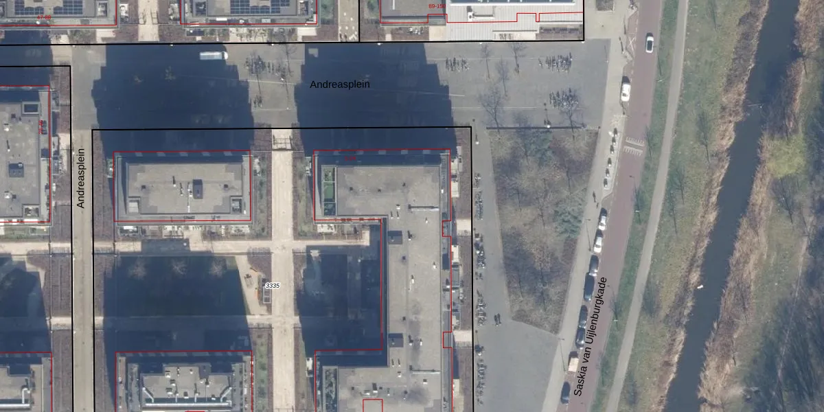 Het perceel waarop Andreasplein 2 staat heeft een oppervlakte van 6790 m². Dit is een zeer groot perceel. De perceeloppervlakte wordt geregistreerd door het Kadaster. Gedetailleerde informatie over de maten van dit perceel kunt u vinden in het rapport Kadastrale kaart met maatvoering van Andreasplein 2.