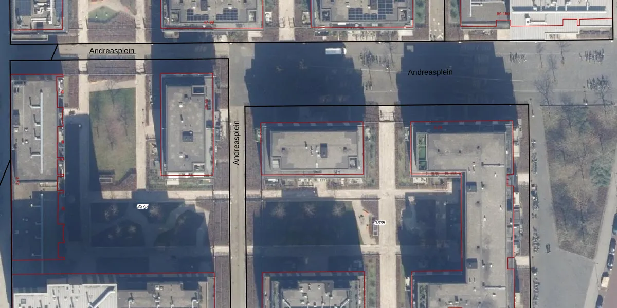 Het perceel waarop Andreasplein 21 staat heeft een oppervlakte van 6790 m². Dit is een zeer groot perceel. De perceeloppervlakte wordt geregistreerd door het Kadaster. Gedetailleerde informatie over de maten van dit perceel kunt u vinden in het rapport Kadastrale kaart met maatvoering van Andreasplein 21.
