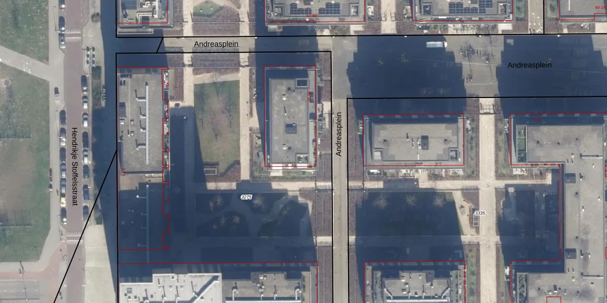 Het perceel waarop Andreasplein 25 staat heeft een oppervlakte van 6327 m². Dit is een zeer groot perceel. De perceeloppervlakte wordt geregistreerd door het Kadaster. Gedetailleerde informatie over de maten van dit perceel kunt u vinden in het rapport Kadastrale kaart met maatvoering van Andreasplein 25.