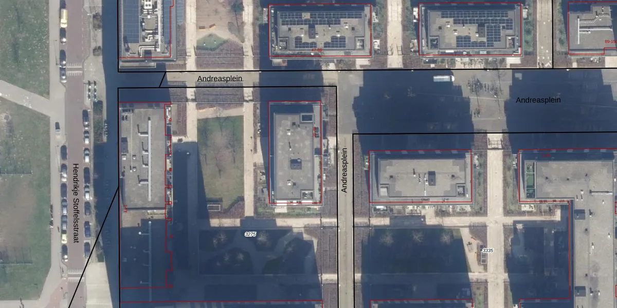 Het perceel waarop Andreasplein 35 staat heeft een oppervlakte van 6327 m². Dit is een zeer groot perceel. De perceeloppervlakte wordt geregistreerd door het Kadaster. Gedetailleerde informatie over de maten van dit perceel kunt u vinden in het rapport Kadastrale kaart met maatvoering van Andreasplein 35.