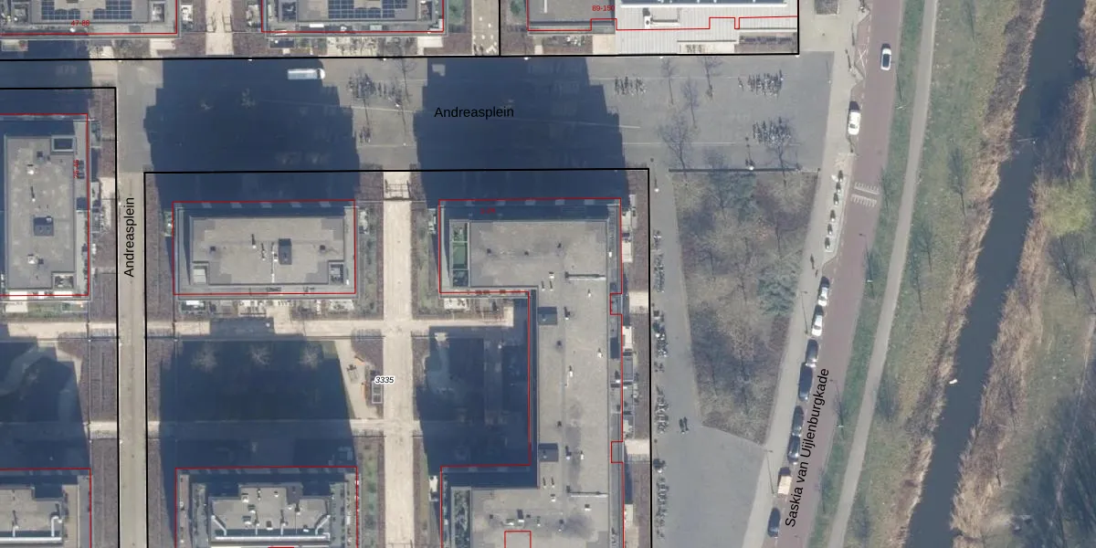 Het perceel waarop Andreasplein 4 staat heeft een oppervlakte van 6790 m². Dit is een zeer groot perceel. De perceeloppervlakte wordt geregistreerd door het Kadaster. Gedetailleerde informatie over de maten van dit perceel kunt u vinden in het rapport Kadastrale kaart met maatvoering van Andreasplein 4.