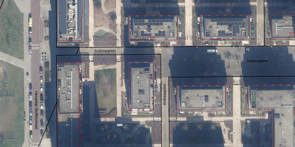 Het perceel waarop Andreasplein 44 staat heeft een oppervlakte van 6327 m². Dit is een zeer groot perceel. De perceeloppervlakte wordt geregistreerd door het Kadaster. Gedetailleerde informatie over de maten van dit perceel kunt u vinden in het rapport Kadastrale kaart met maatvoering van Andreasplein 44.
